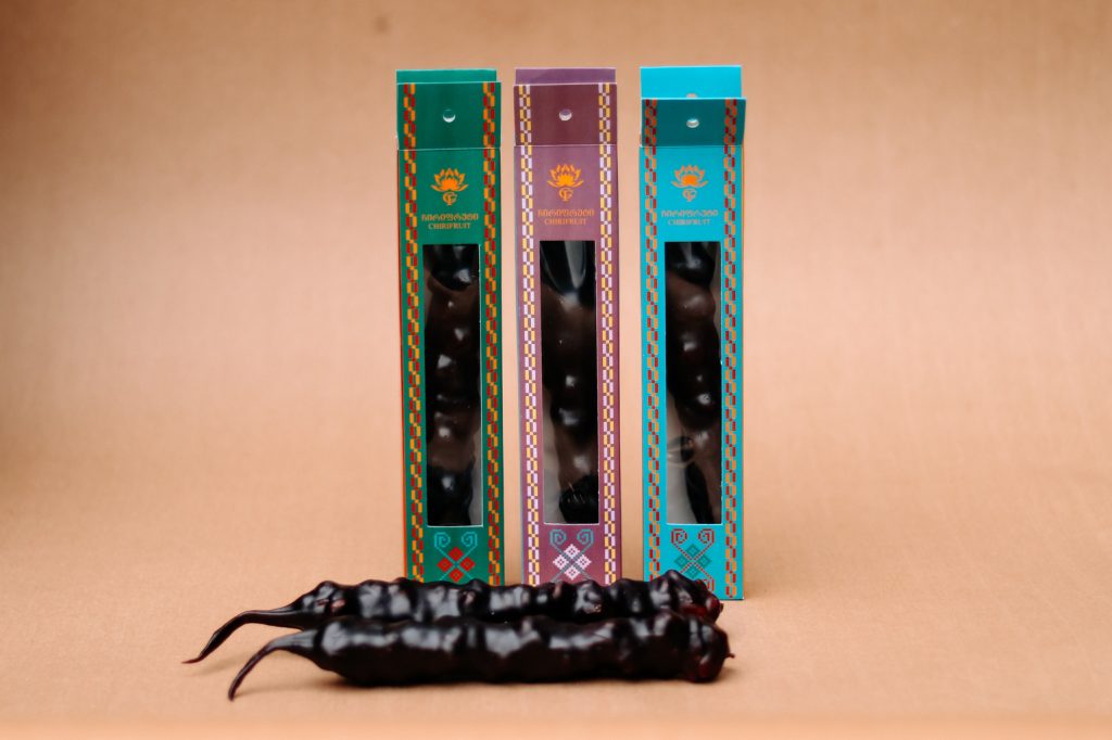 ტრადიციული გზითა და ხილის ნოტებზე დამზადებული ჩურჩხელა, რომელიც ტკბილ ბავშვობაში დაგაბრუნებთ. დამზადებულია 100%-ით ნატურალური წვენითა და საგულდაგულოდ არჩეული ნიგვზით. ყველანაირი დანამატების გარეშე.